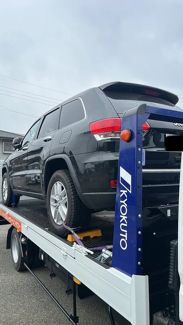 福岡県古賀市からお客様のお車JEEPがエンジントラブルにより、走行不能とのことで当社にご連絡をいただきました。